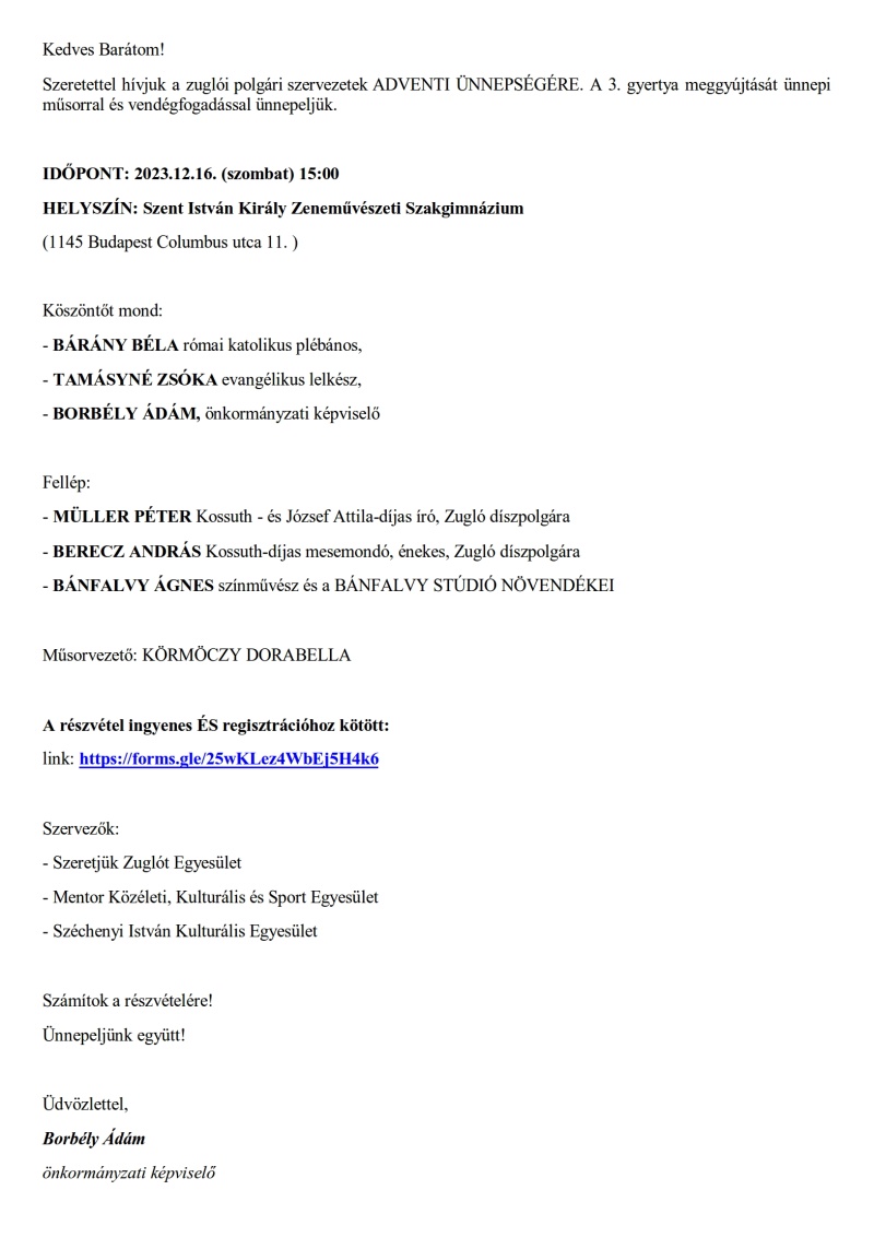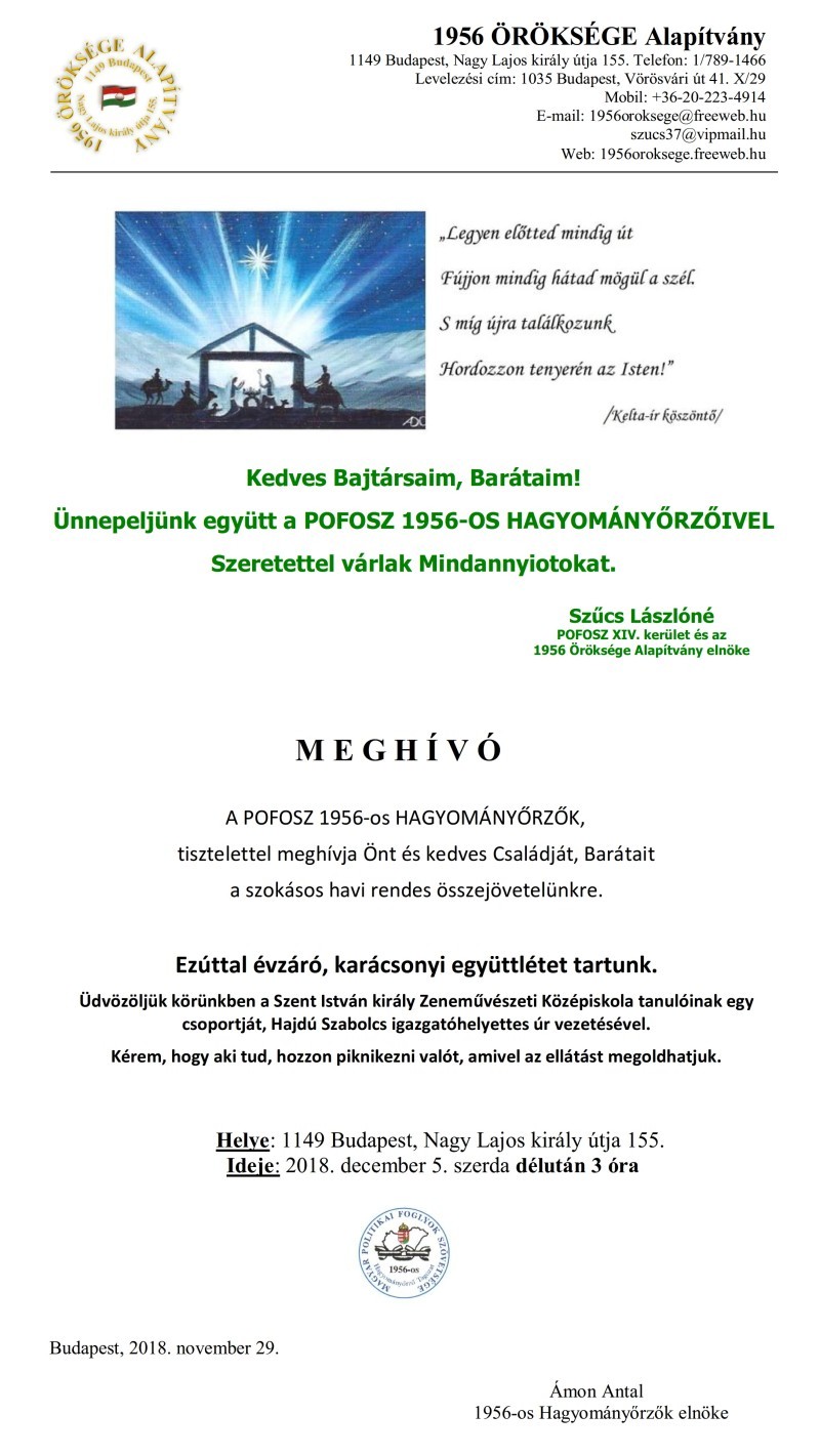 M E G H Í V Ó - Karácsonyköszöntő összejövetelre
