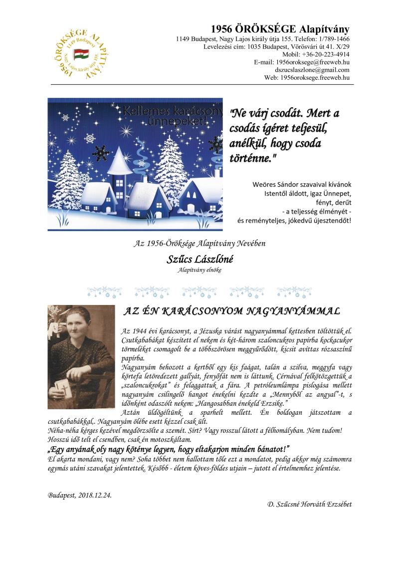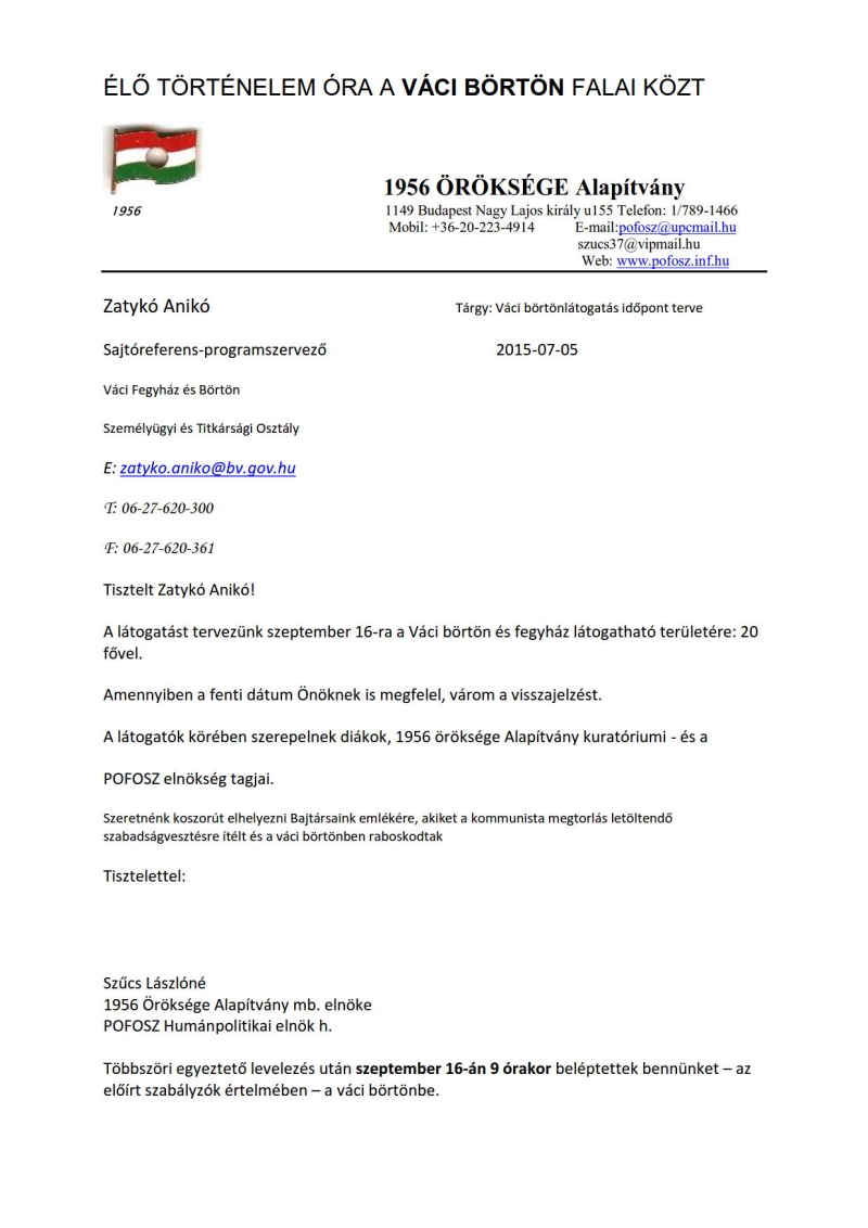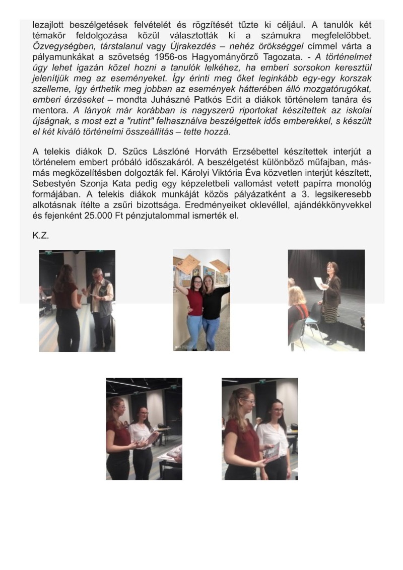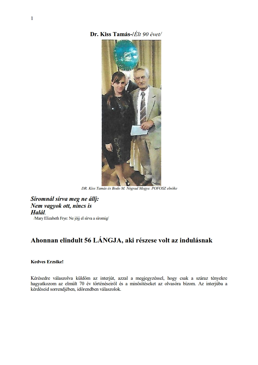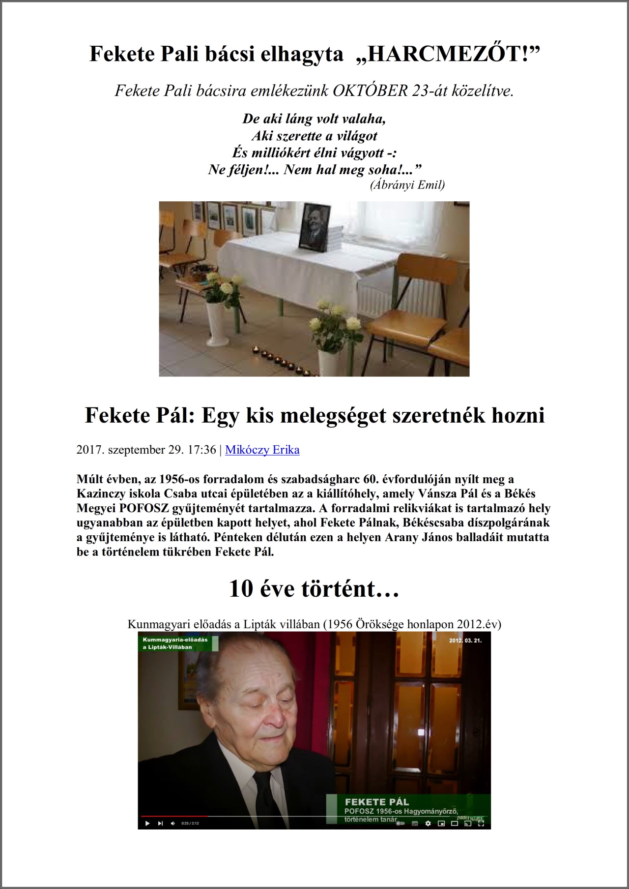 élő történelemórát az 1956 Öröksége Alapítvány szervezte Szűcs Lászlóné elnök vezetésével, emlékezve alapítónkra Szécsi Istvánra, halálának 1 éves évfordulójára. |