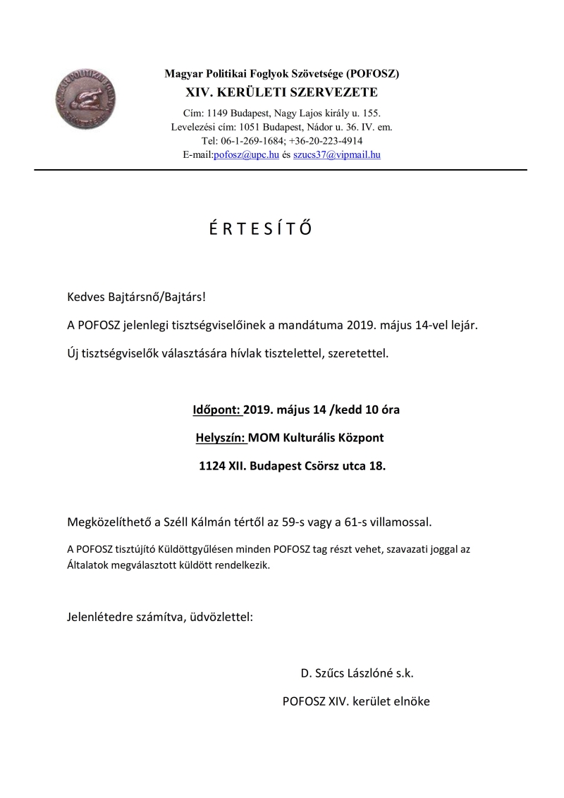 2018. nov. 7-én 12 óra - Bp., Nádor u. 36. IV. em.