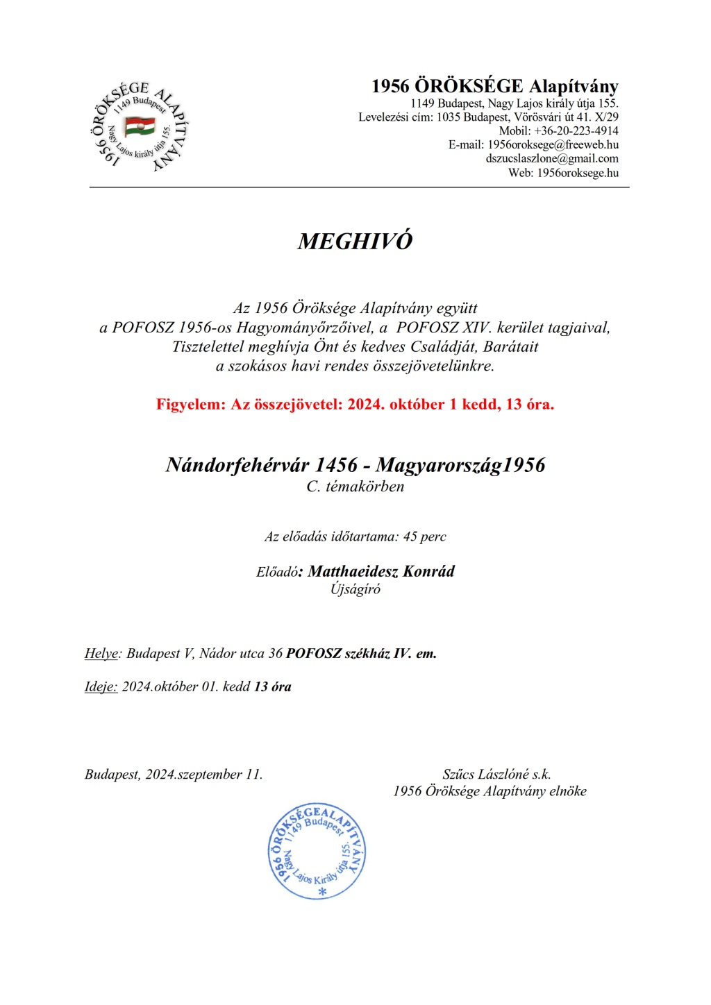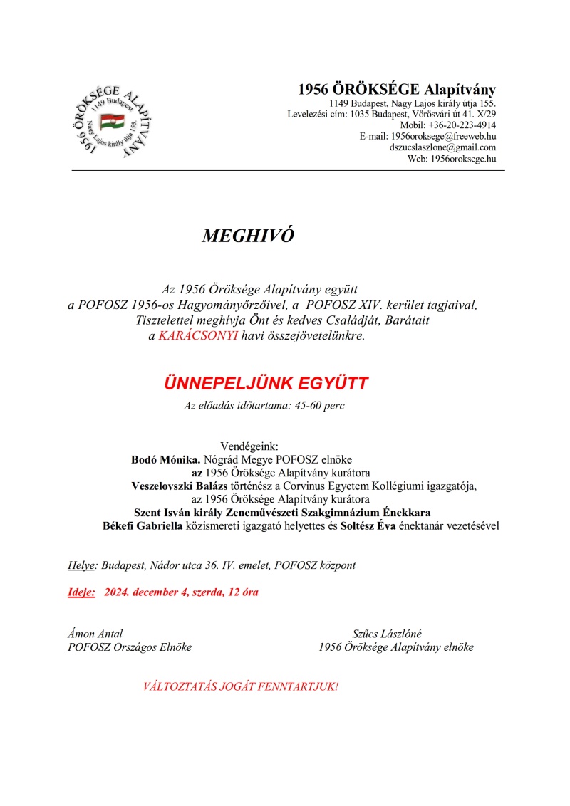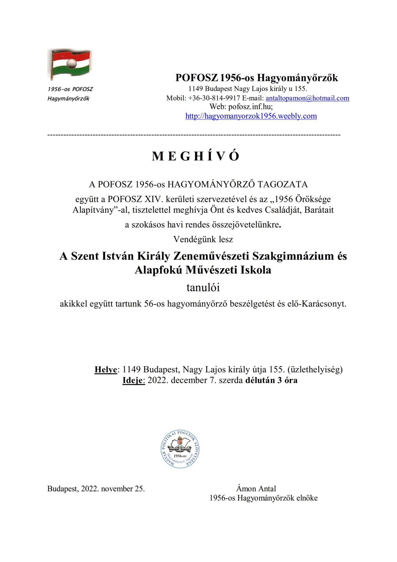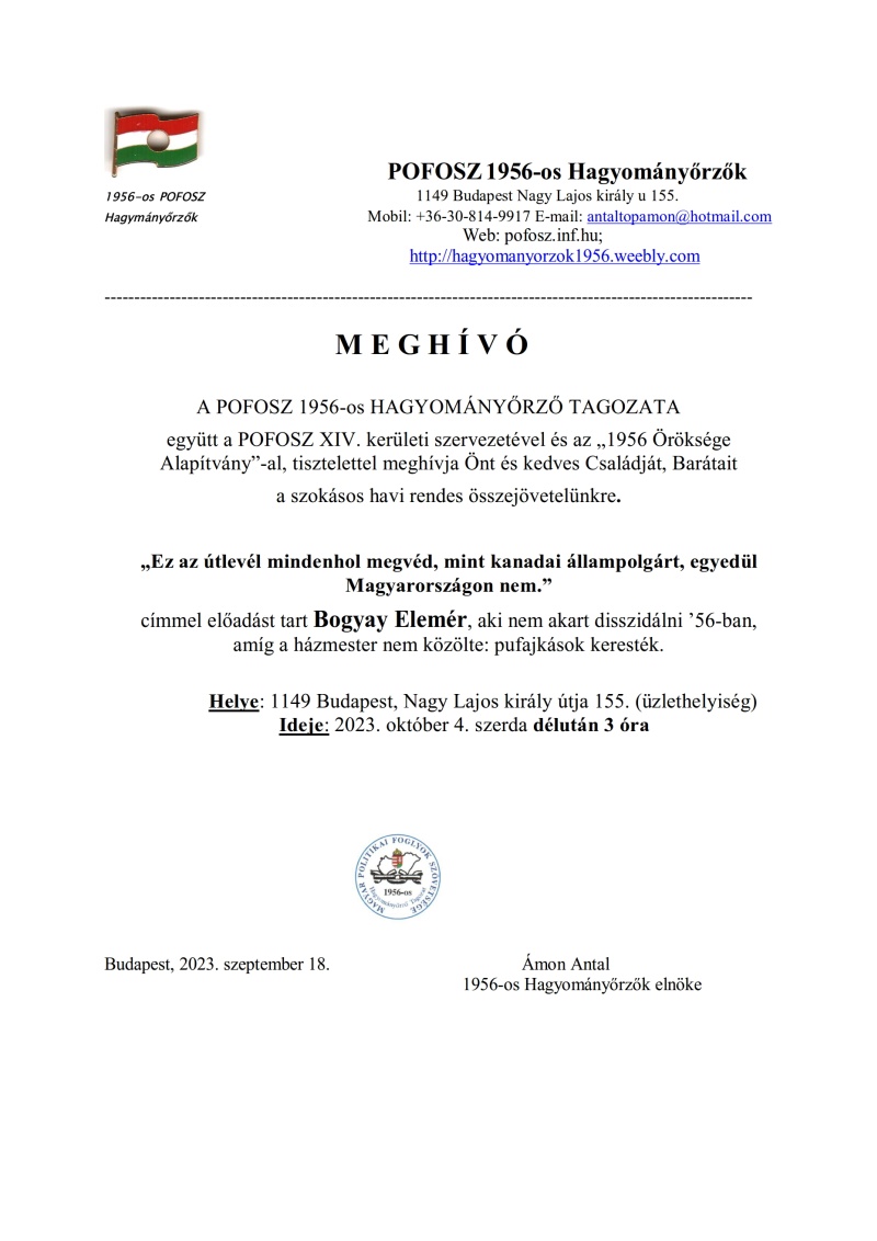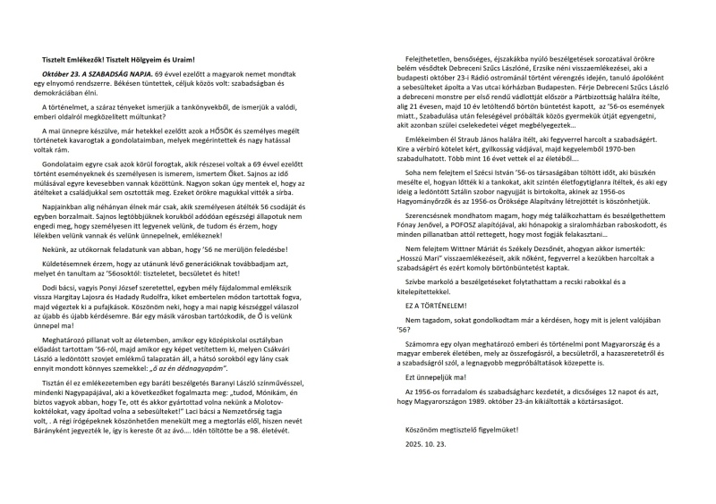 M E G H Í V Ó - Az 1956. október 23-a tiszteletére tartandó megemlékezésre,