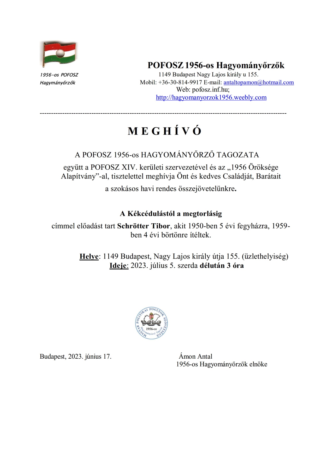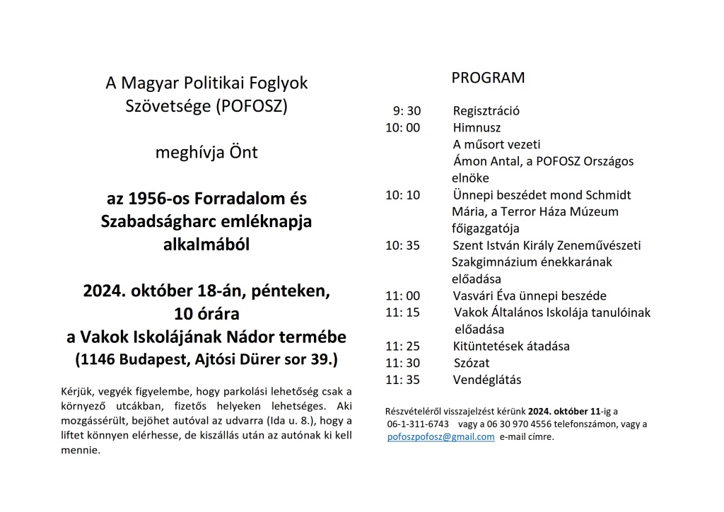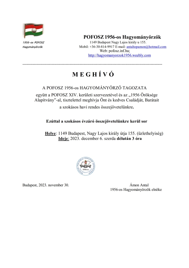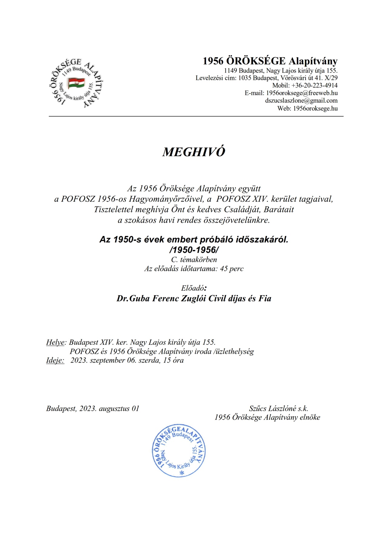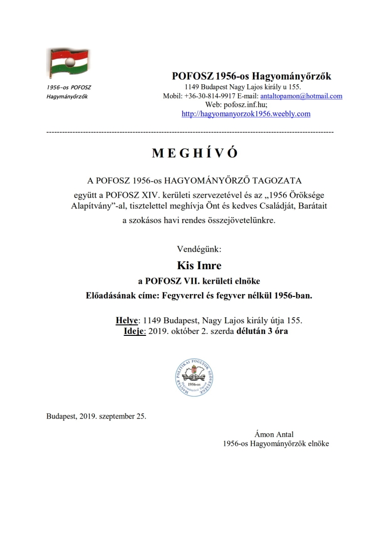 M E G H Í V Ó - Az 1956. október 23-a tiszteletére tartandó megemlékezésre,