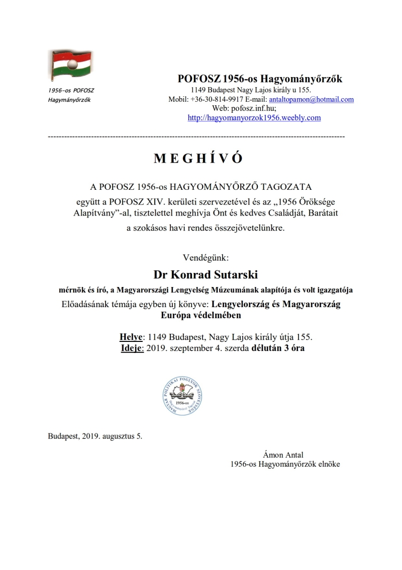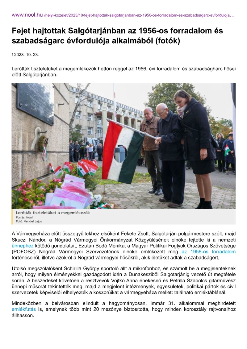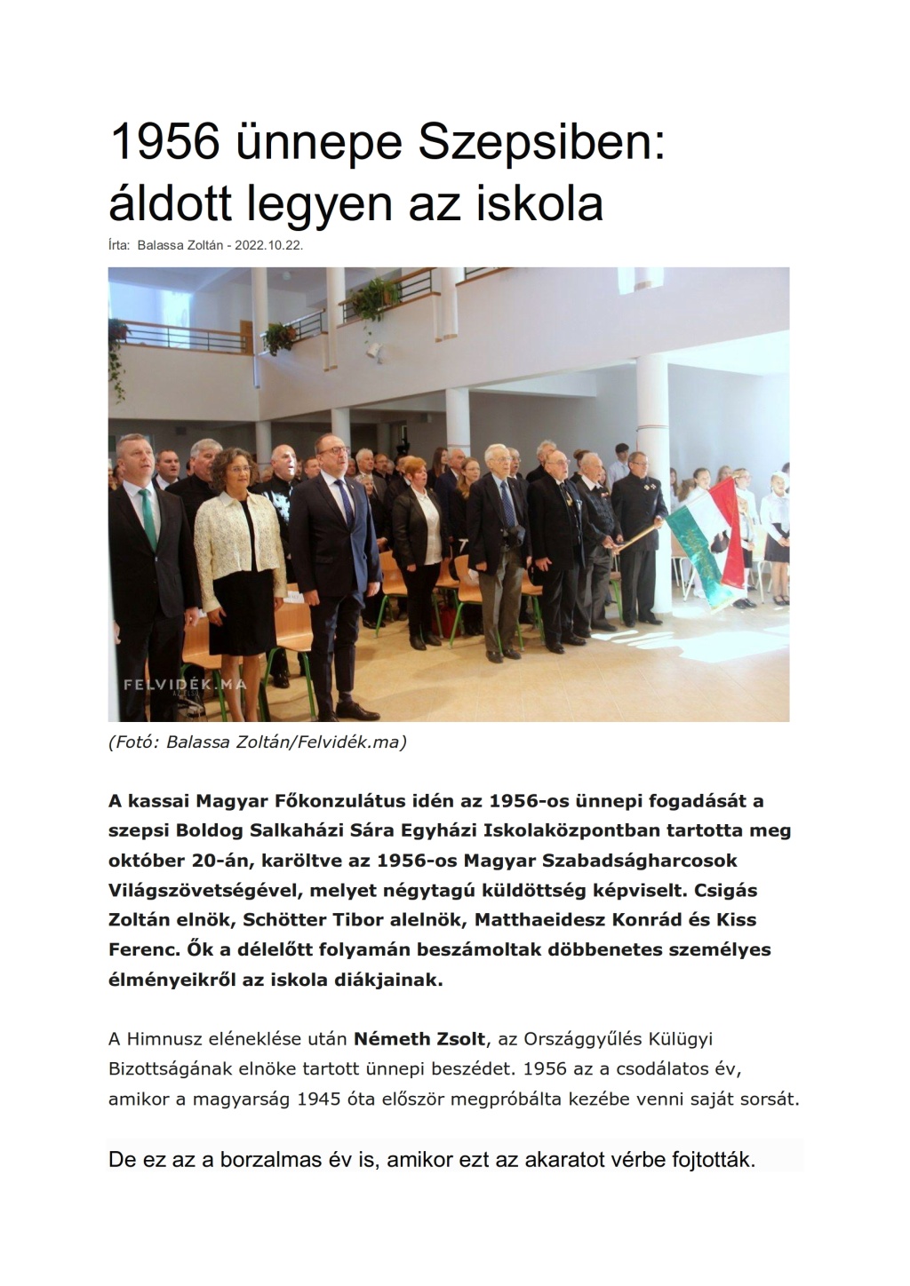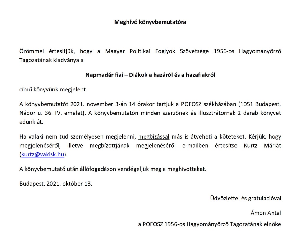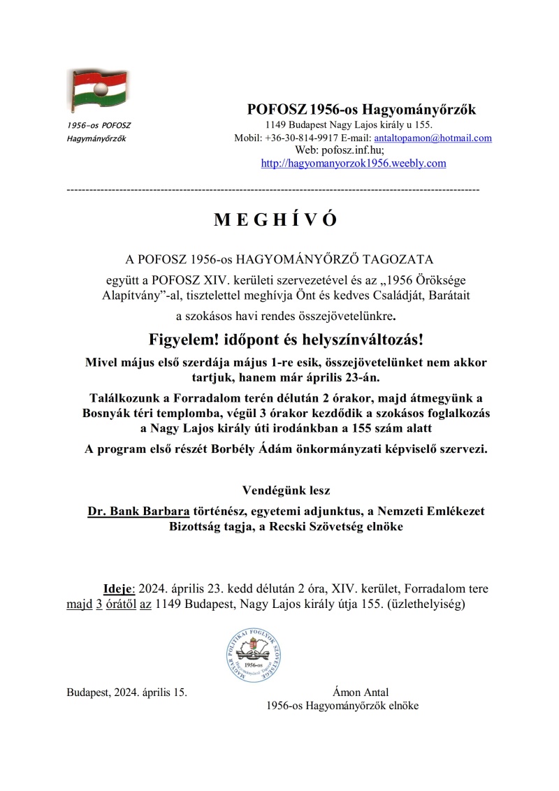M E G H Í V Ó - Az 1956. október 23-a tiszteletére tartandó megemlékezésre,