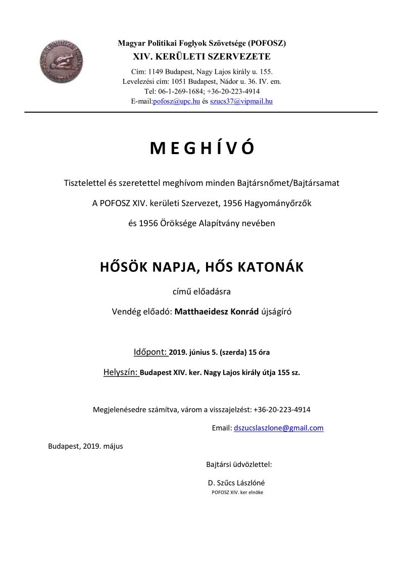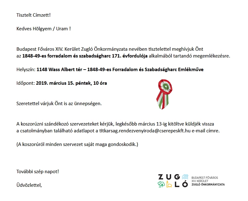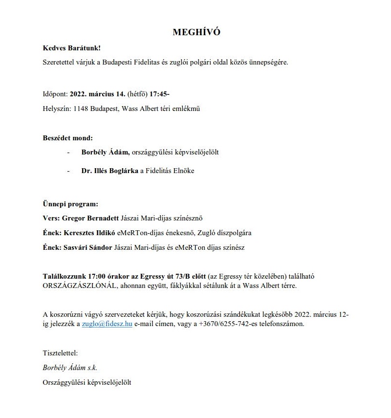 M E G H Í V Ó M Á R C I U S - 1 5 - ei megemlékezésre.