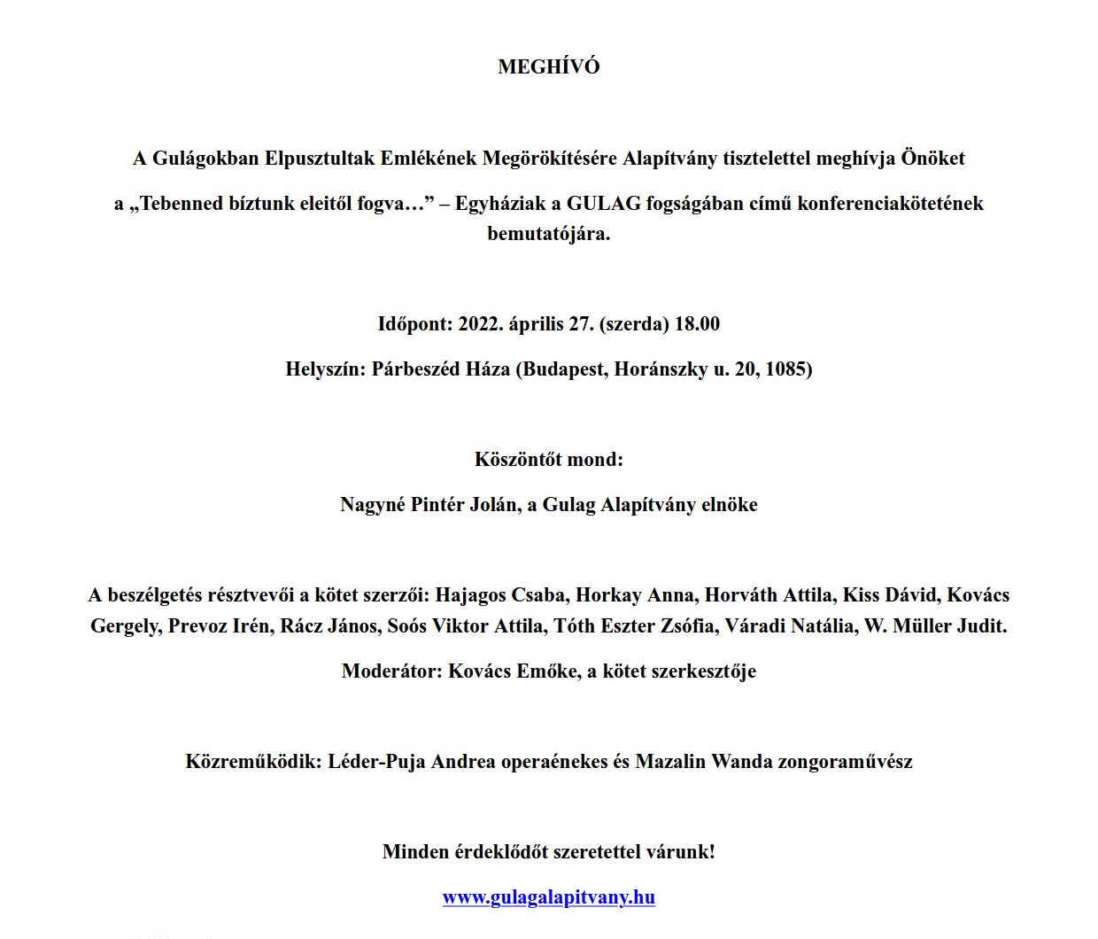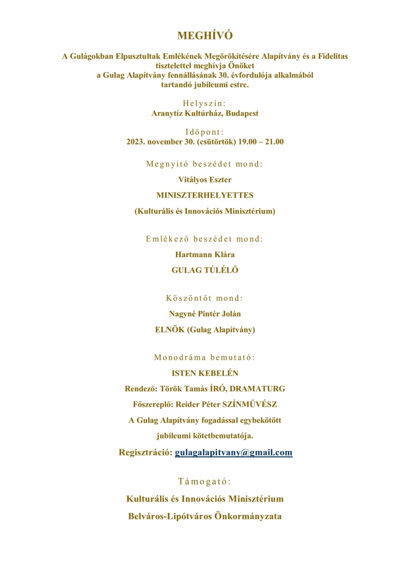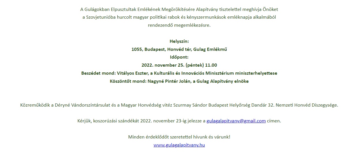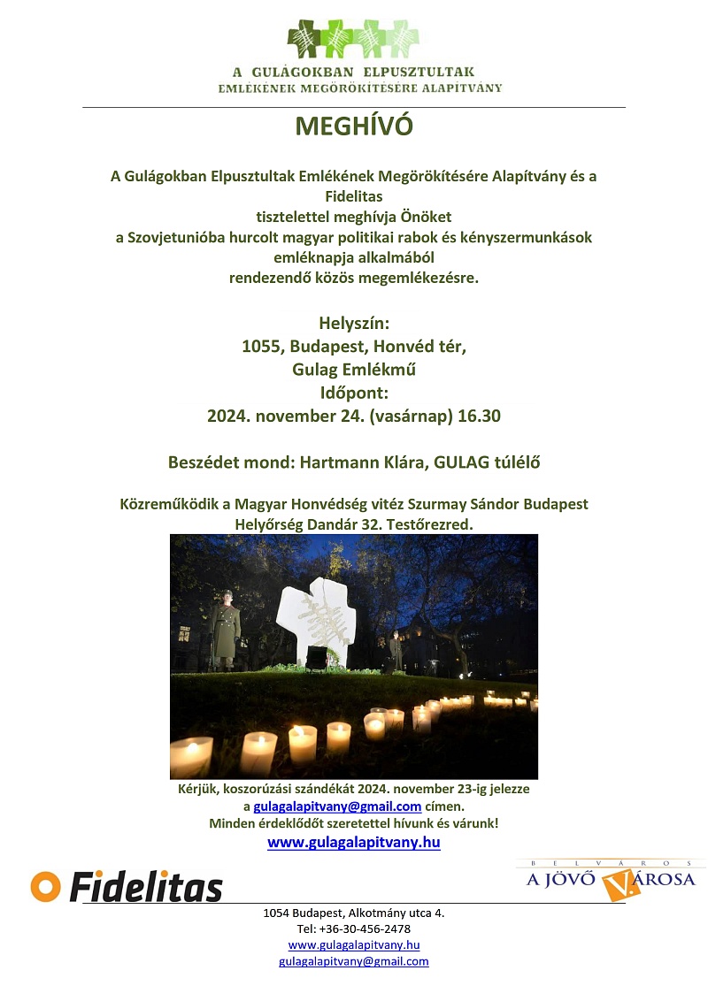 M E G H Í V Ó - A Gulágon Elpusztultak Emlékének Megörökítésére,