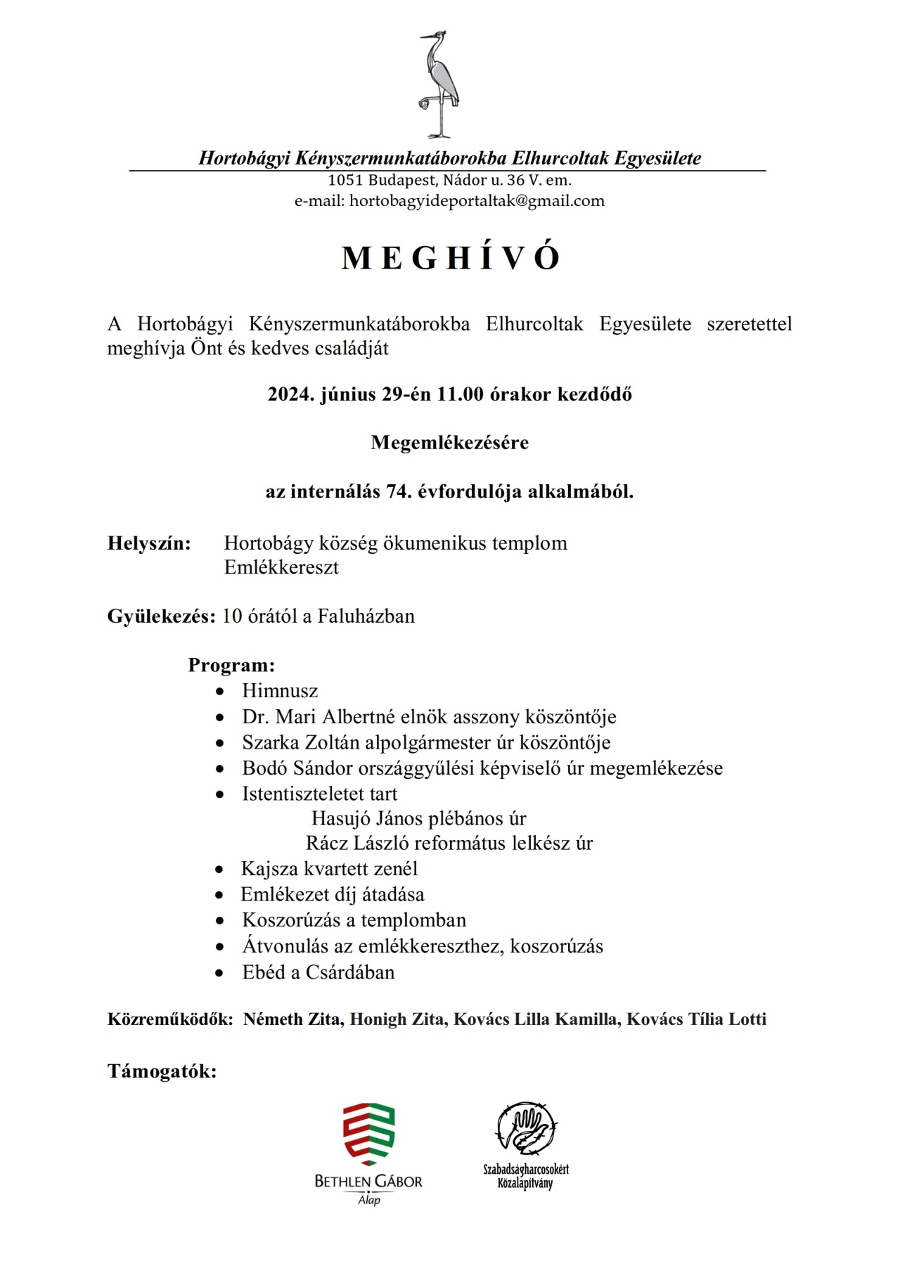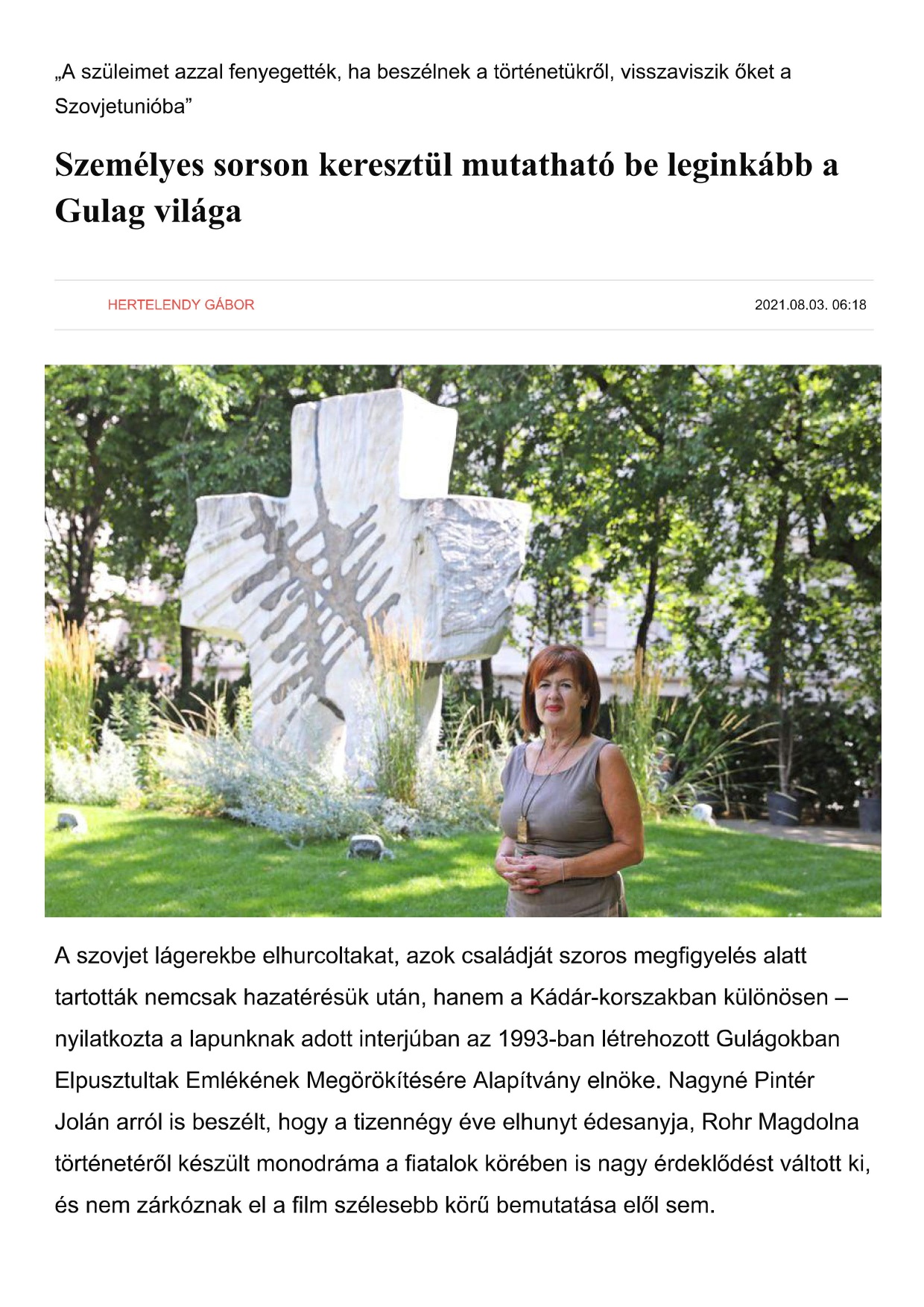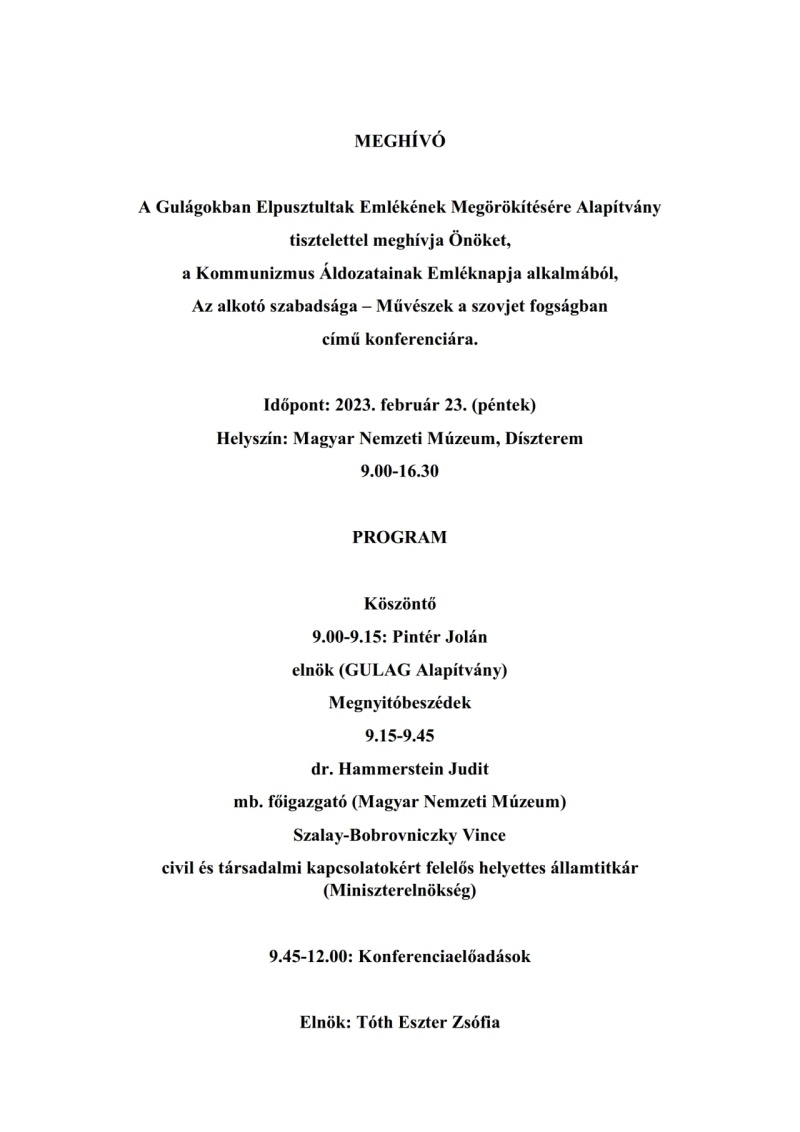 M E G H Í V Ó - A Gulágon Elpusztultak Emlékének Megörökítésére,