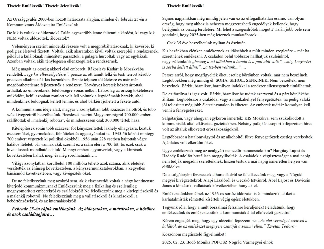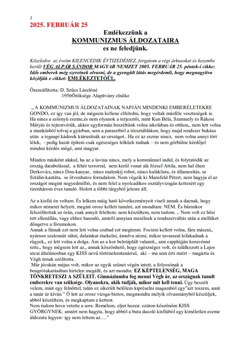 Emlékezzünk a KOMMUNIZMUS ÁLDOZATAIRA - 2025.02.25.
