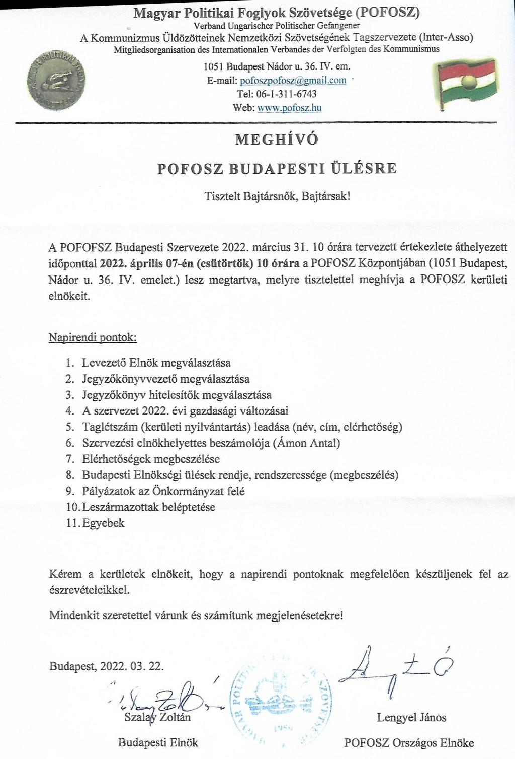 A Magyar Politikai Foglyok Szövetsége központi honlapja: www.pofosz.hu