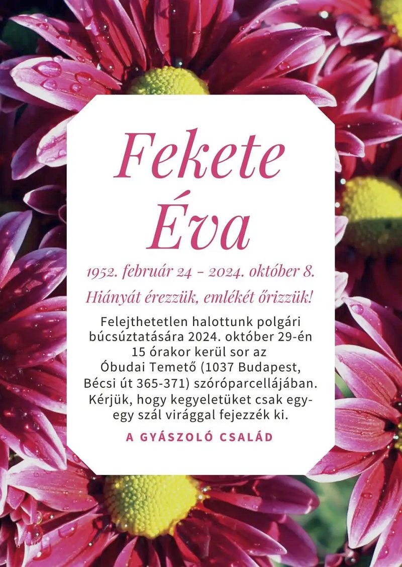 V É G S Ő B Ú C S Ú - F e k e t e É v a könyvelőtől