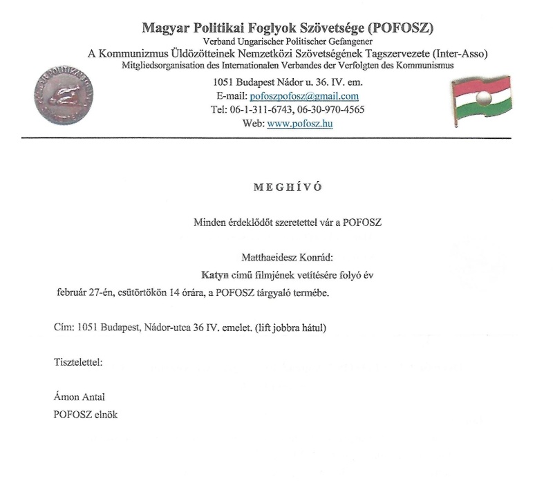 MEGHÍVÓ - Matthaeidesz Konrád - Katyn című film vetítése