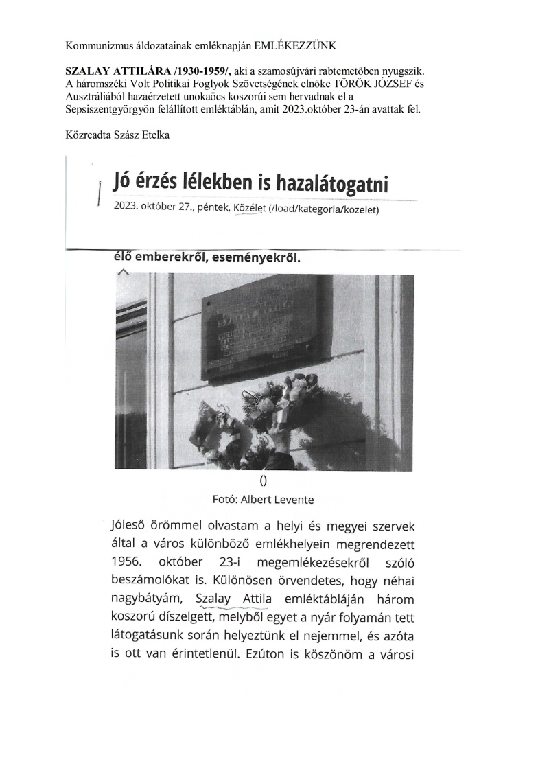A KOSZORUKAT KÖTÖTTÉK ÉS TISZTELEGTEK SIRJUK ELŐTT BALOGH Mónika és Munkatársai