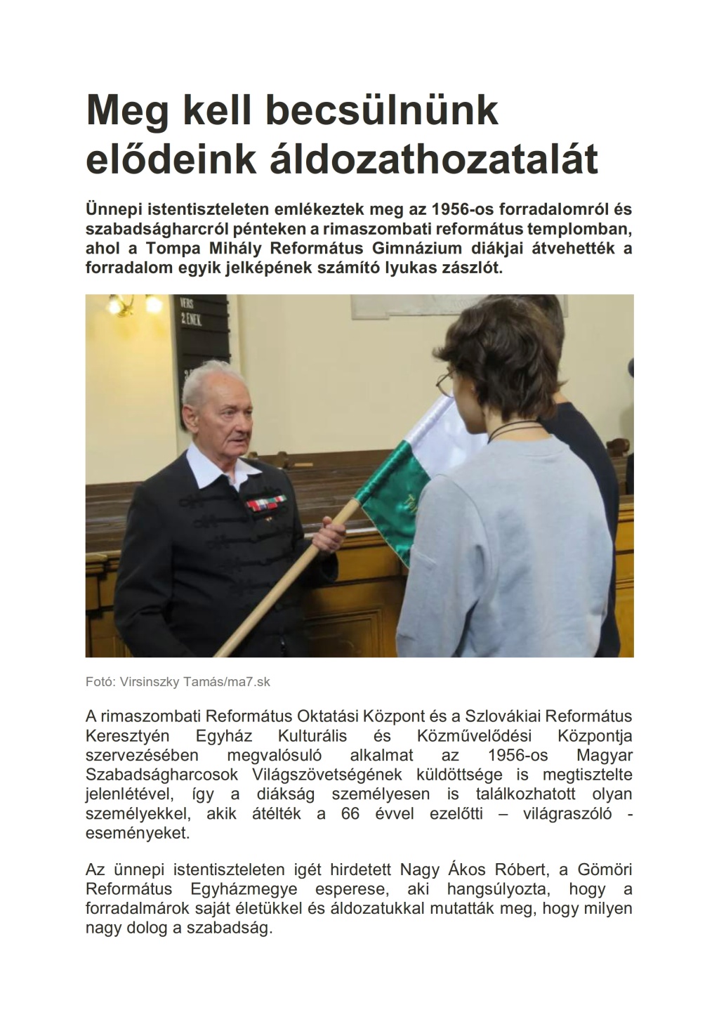 EMLÉKEZÜNK - AZ 1956-OS FORRADALOM 68. ÉVFORDULÓJÁN