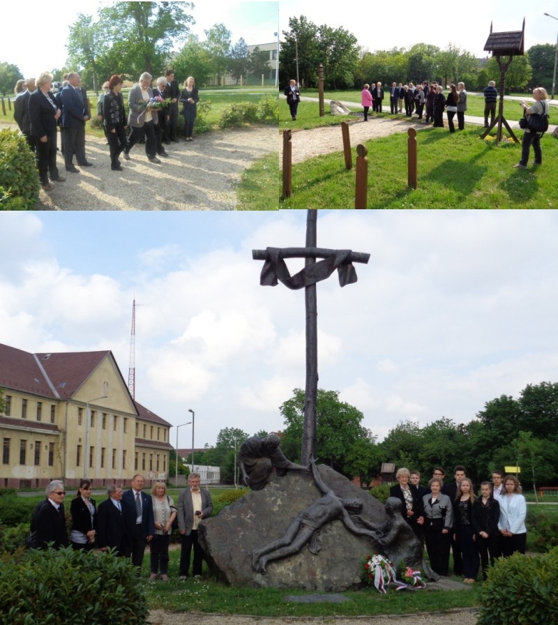 Mi történt Mosonmagyaróváron 1956. október 26-án![]() Csoportkép Rieger Tibor Golgota emlékművénél |