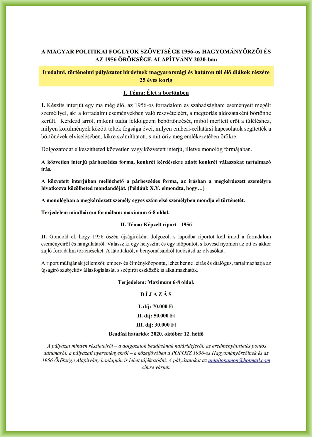 amivel tovább tudjuk őrizni 1956 szellemiségét!