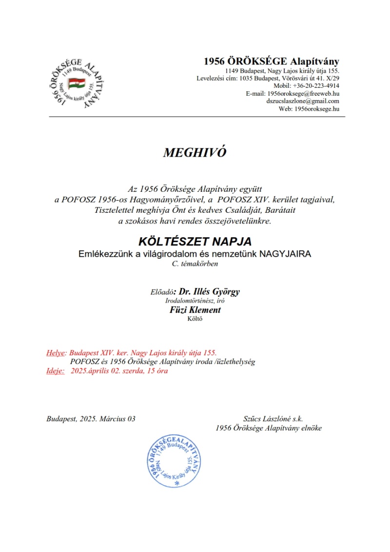 M E G H Í V Ó M Á R C I U S - 1 5 - ei megemlékezésre.