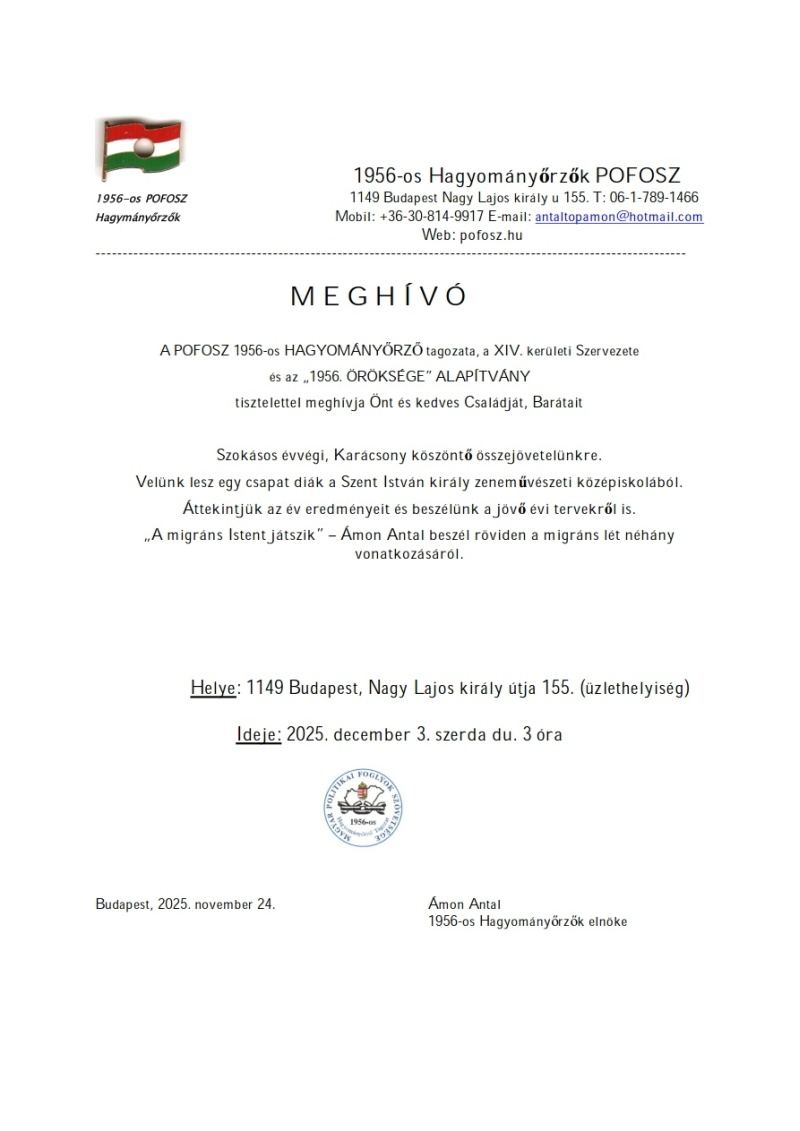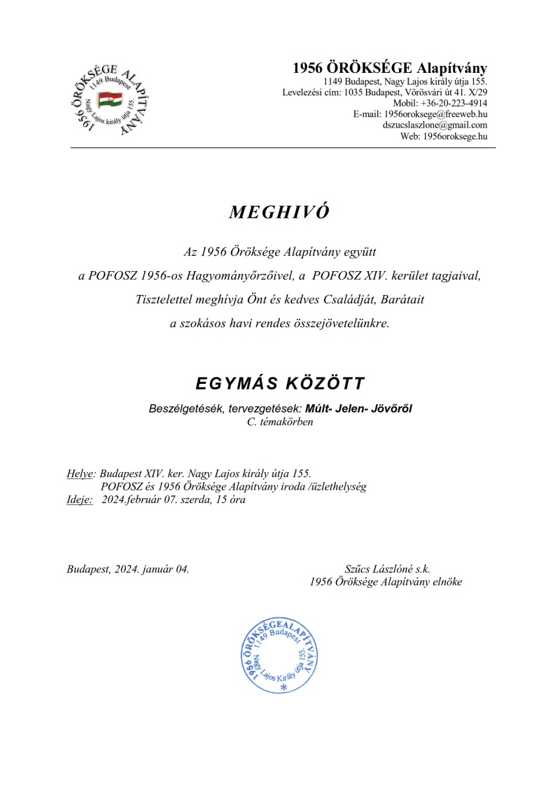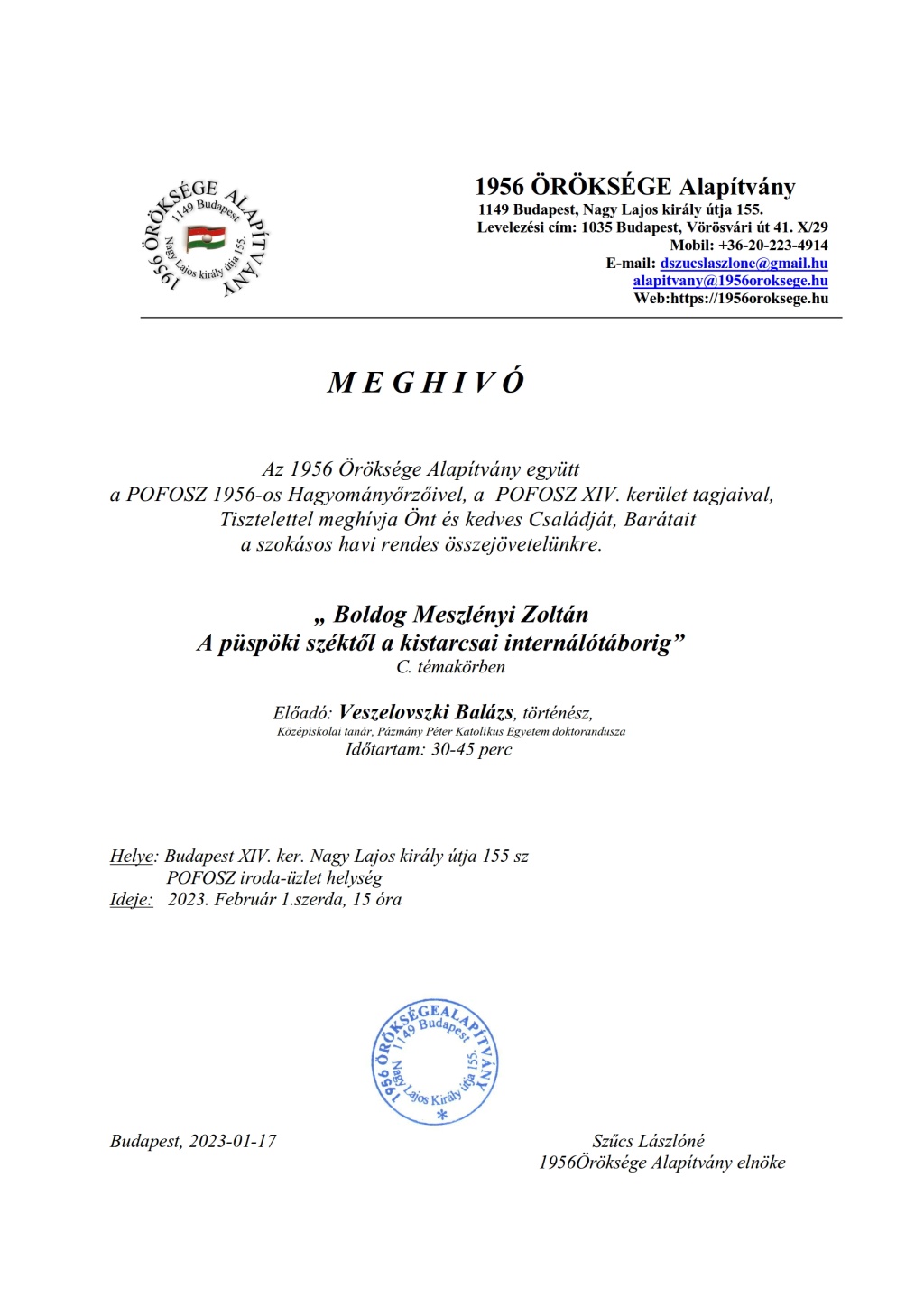 M E G H Í V Ó - Az 1956. október 23-a tiszteletére tartandó megemlékezésre,