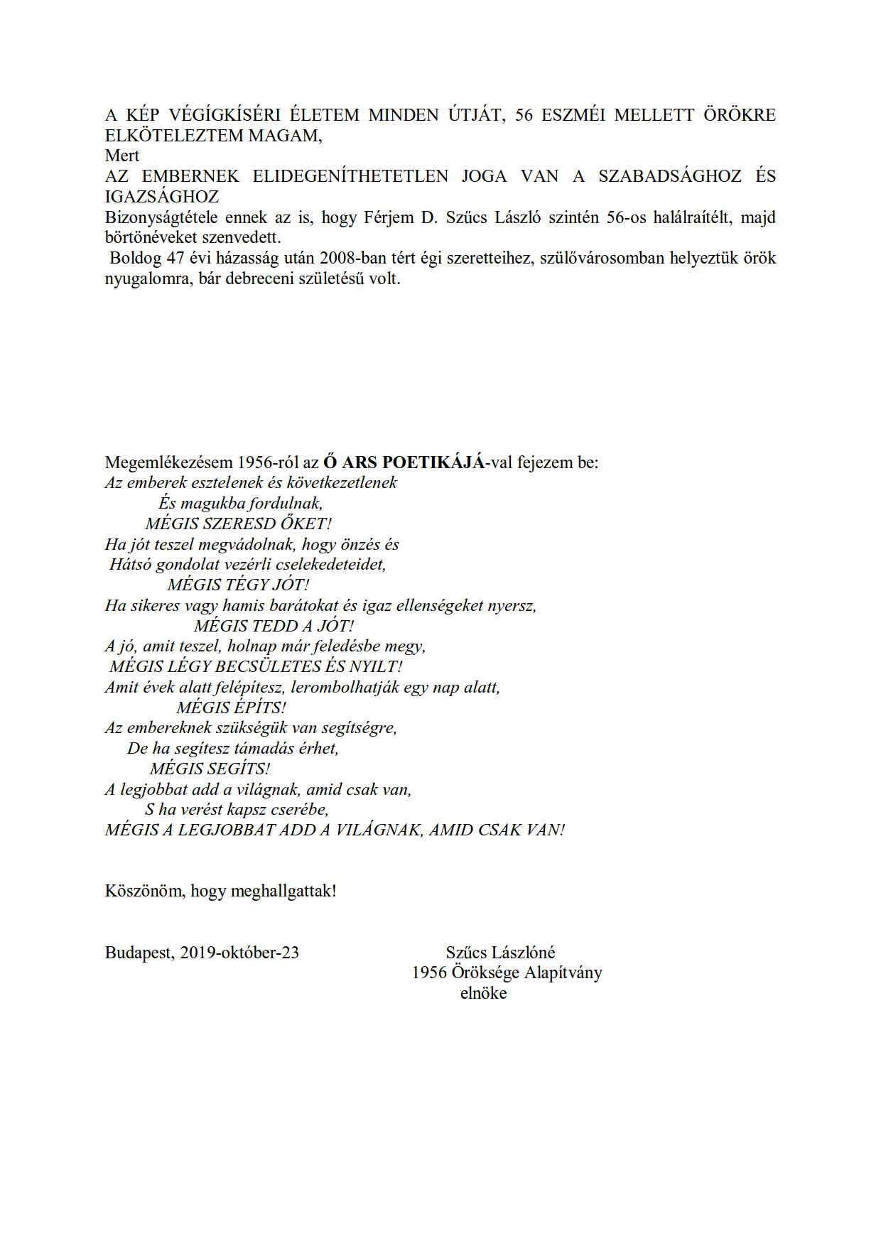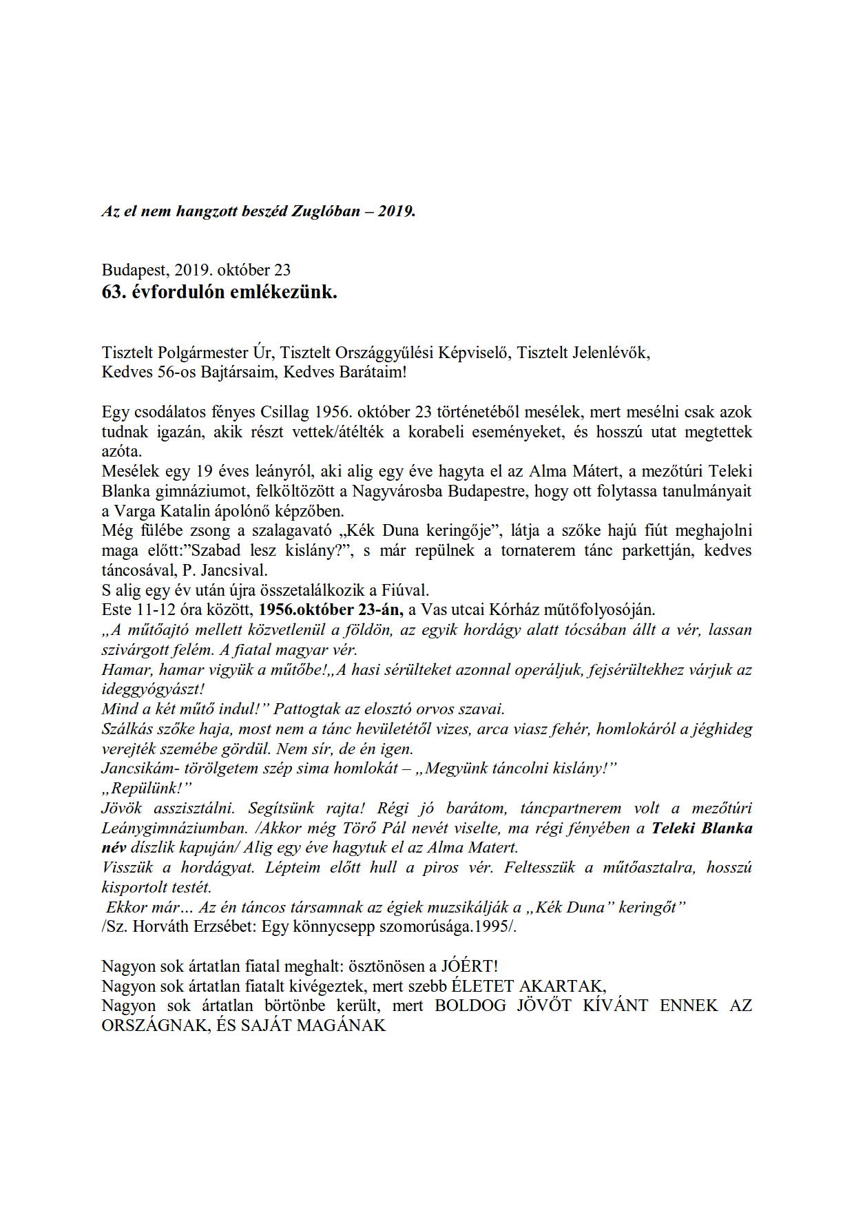 Szűcs Lászlóné: Az el nem hangzott beszéd Zuglóban - 2019. oldal:2.