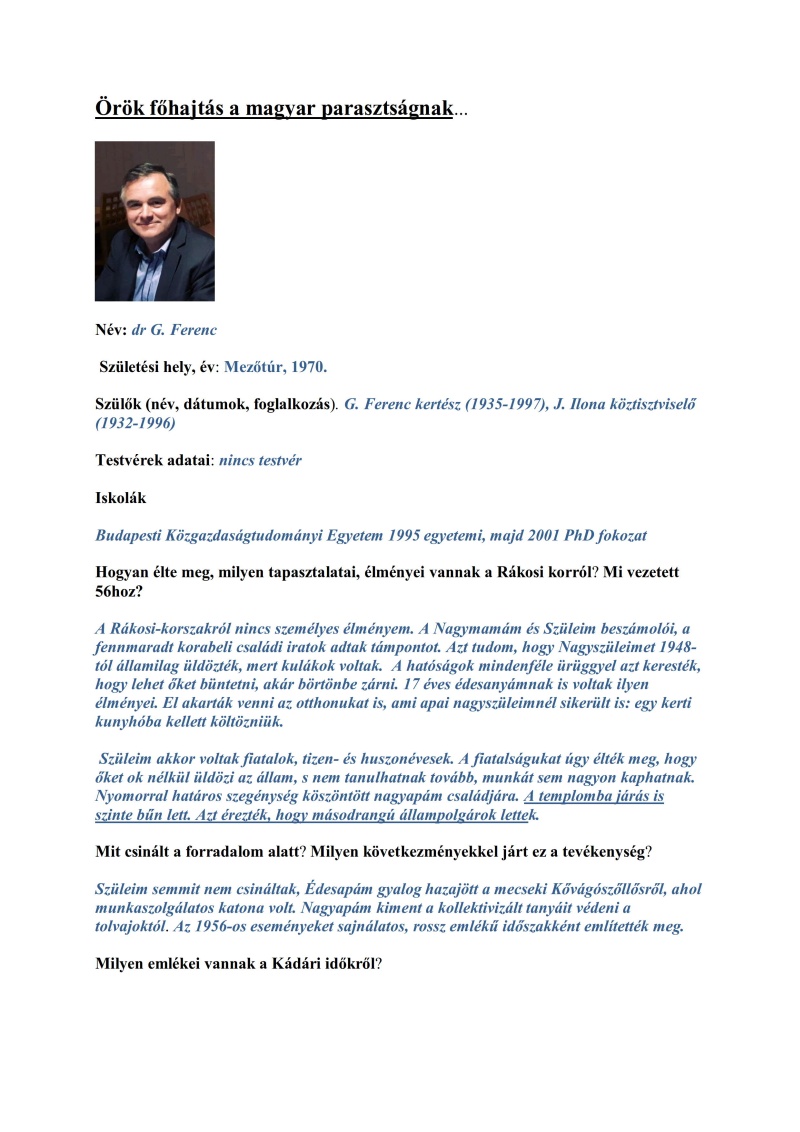 Február első beérkezett interjú dr. G. Ferenc munkája