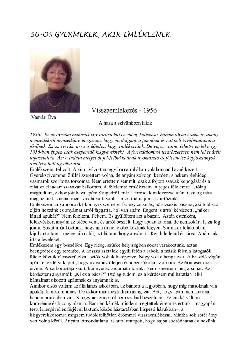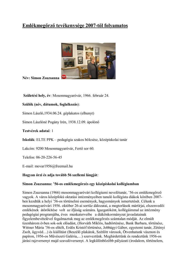 Február harmadik beérkezett interjú Simon Zsuzsanna emlékei