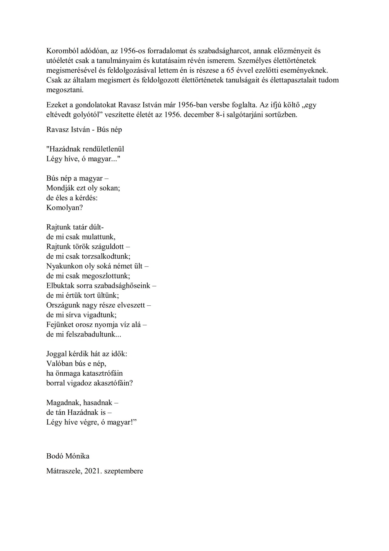 Bodó Mónika megemlékezése Ravasz Istvánról