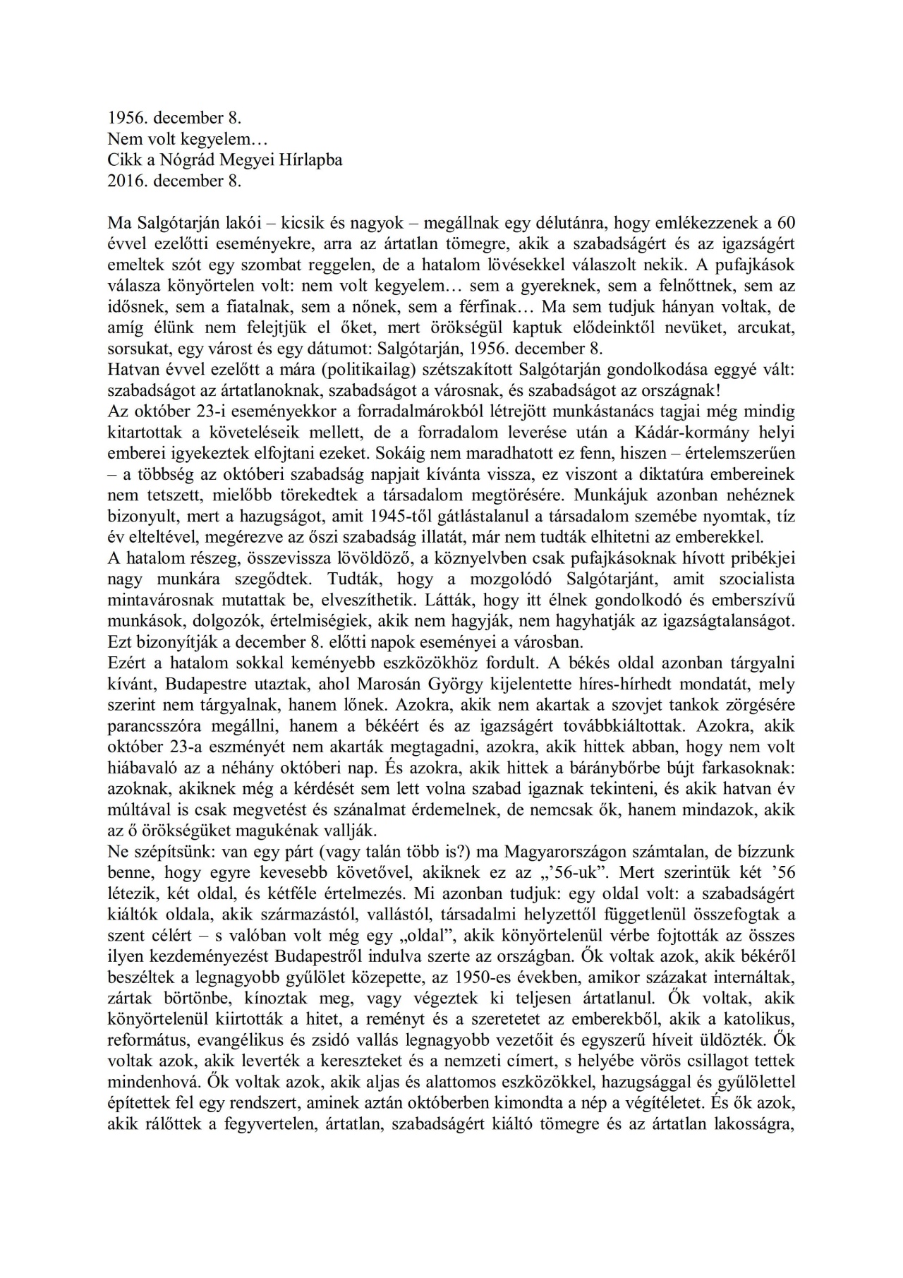 az 1956-os forradalom és szabadságharc 65-ik évfordulójára