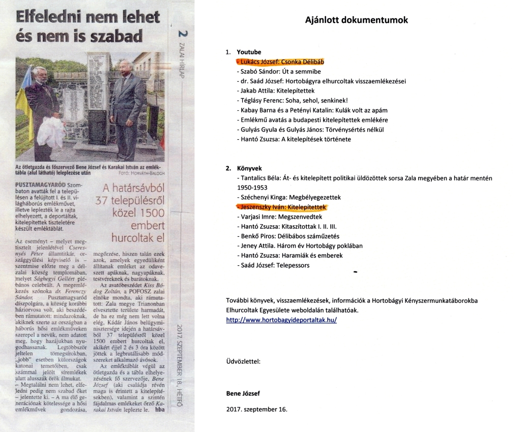valamint a szintén fájdalmas emlékeket őrző Karakai István leplezte le.