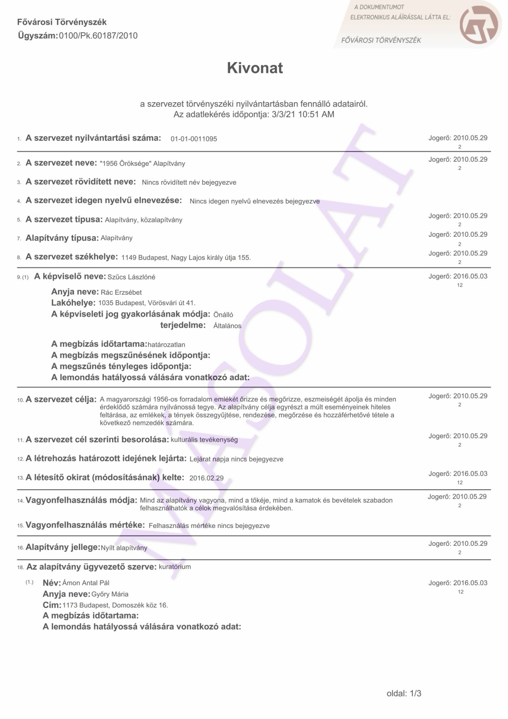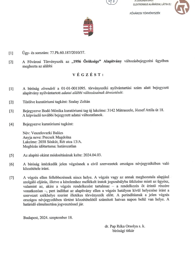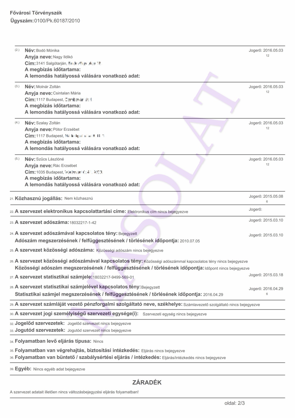 Kivonat - A törvényszéki nyilvántartásból 2024.
