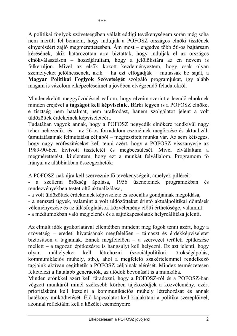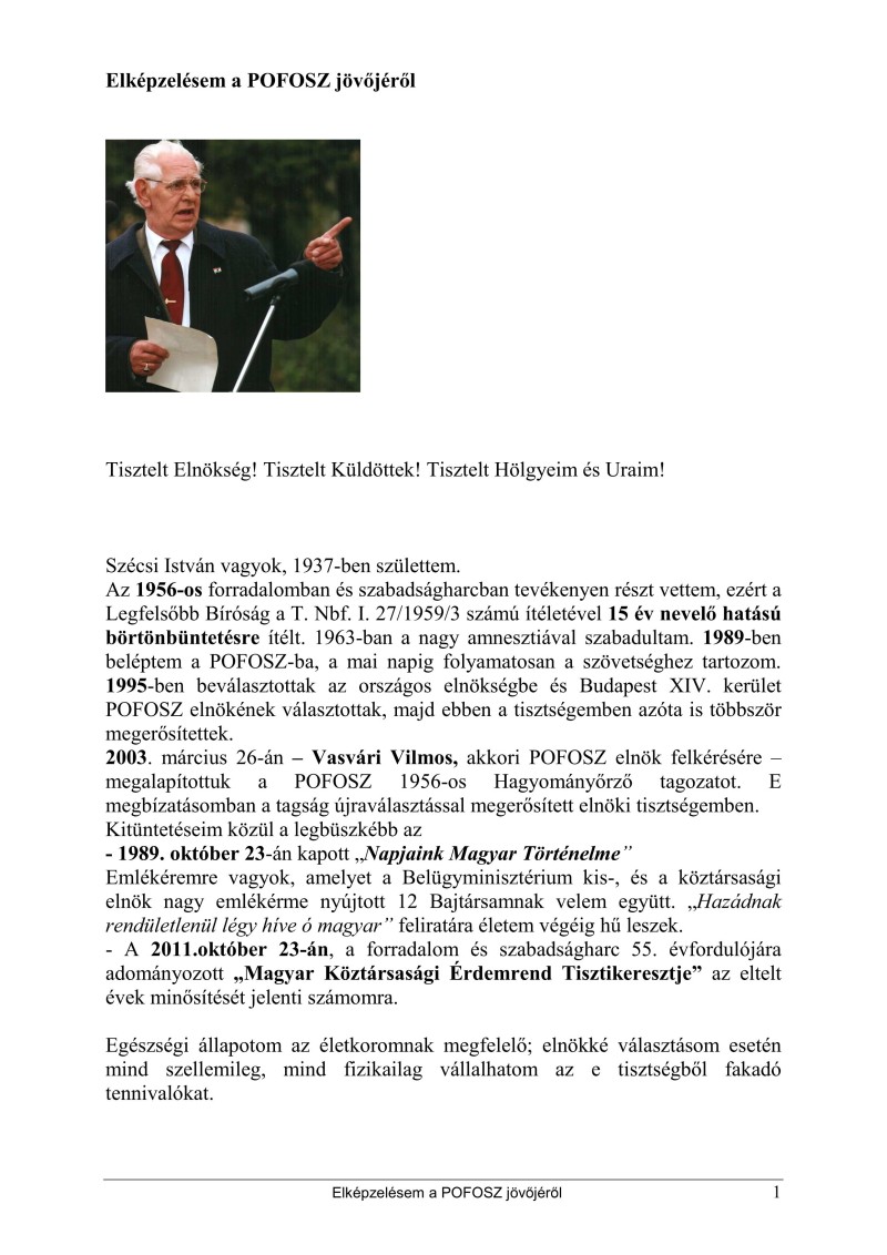 Elképzelésem a POFOSZ jövőjéről