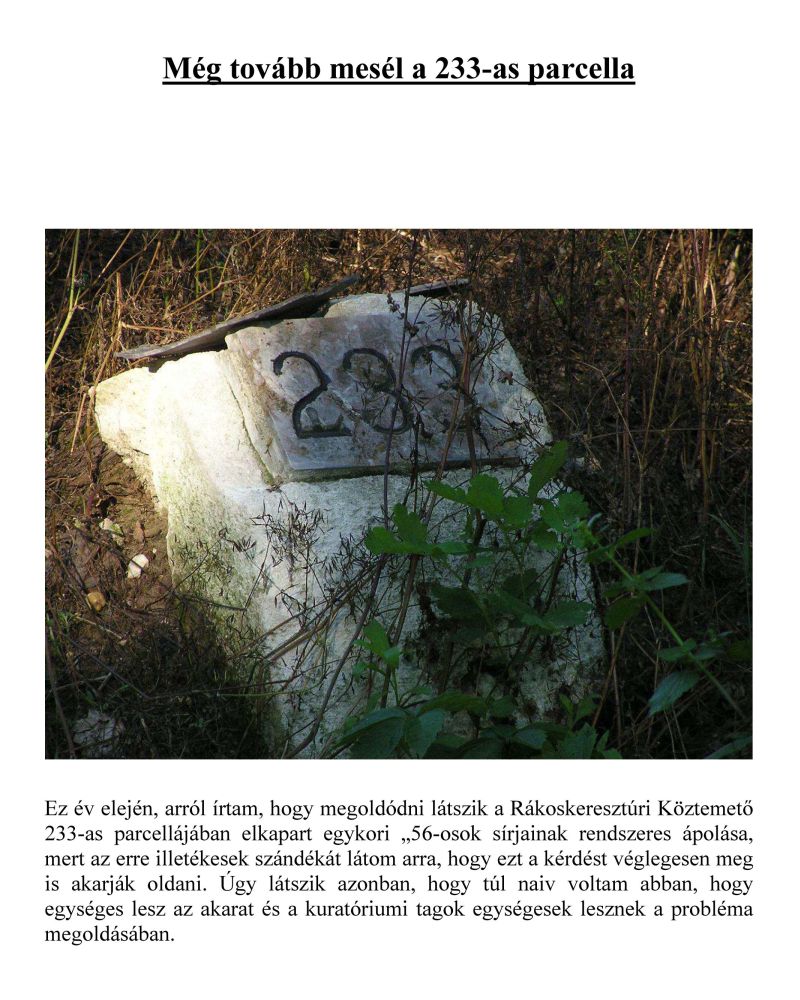 Még tovább mesél a 233-as parcella