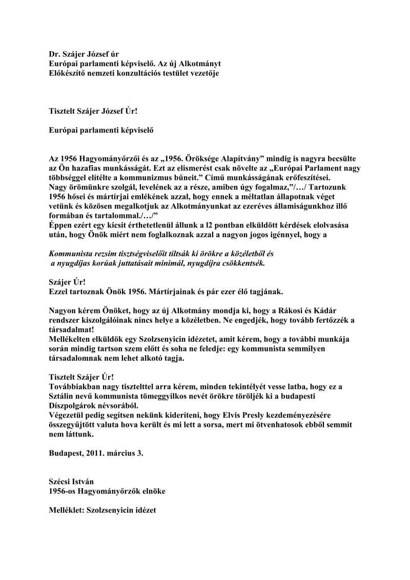 Szécsi István ünnepi beszéde 2009. október 23-án