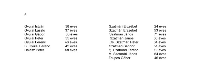 Kivégzettek névsora: