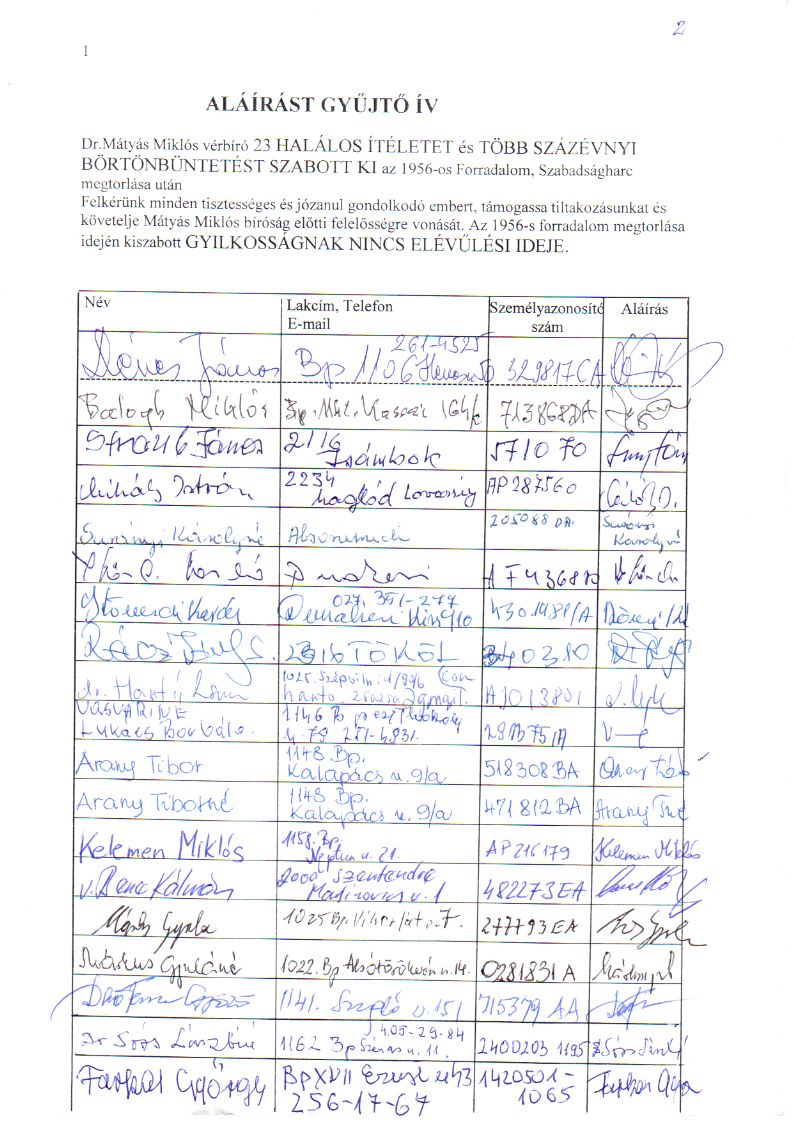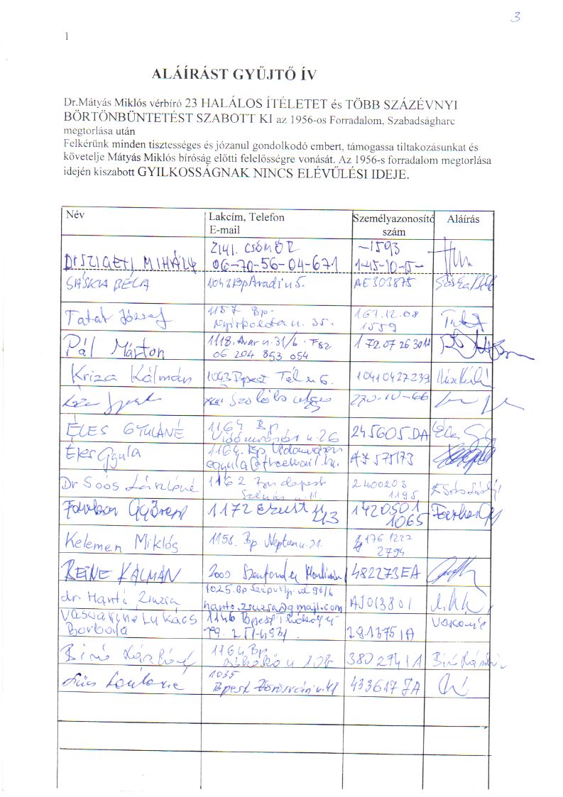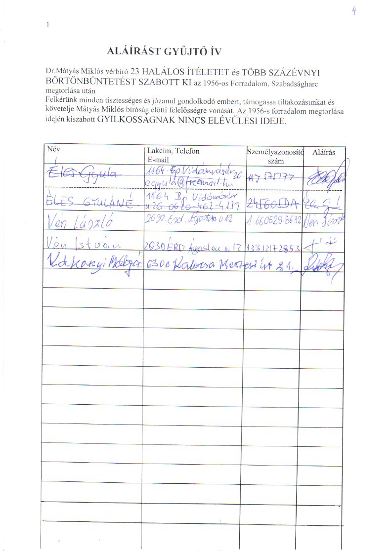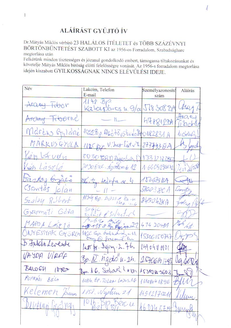 Aláírást gyűjtő ívek: