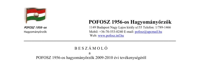 POFOSZ 1956-os hagyományőrzők beszámolója 2009-2010