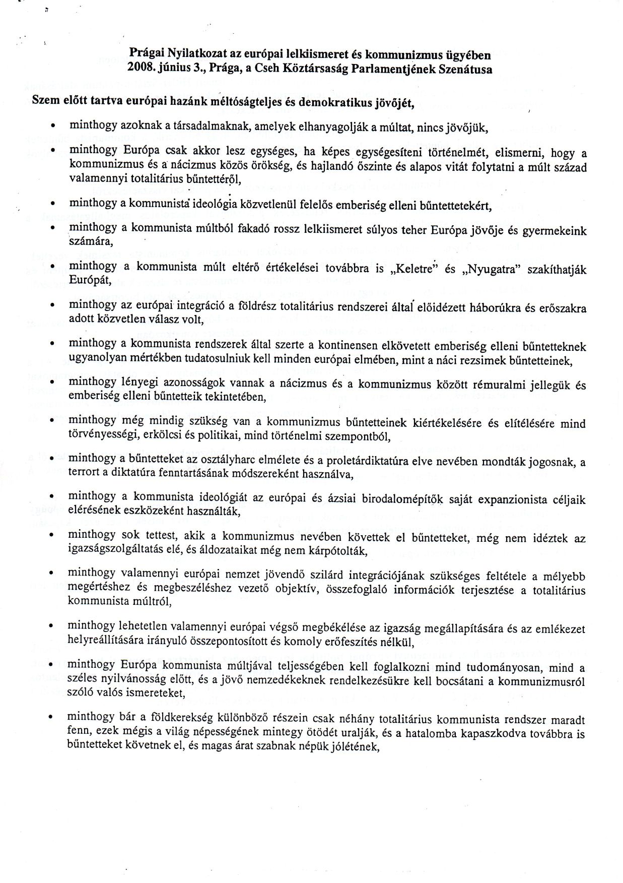 Prágai Nyilatkozat 2008. június 3.