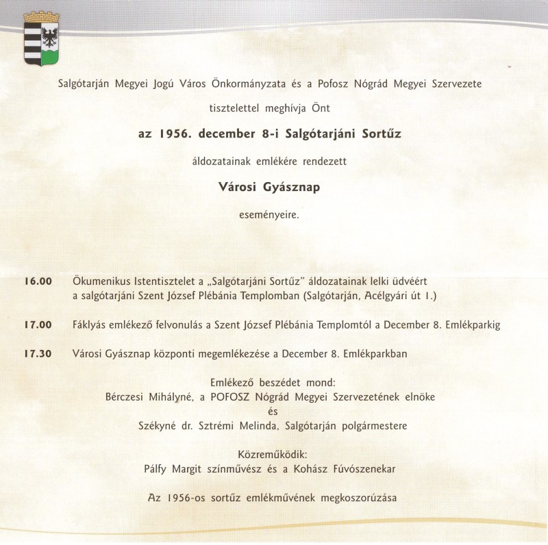 Az 1956. december 8-ai Salgótarjáni Sortűz áldozatainak emlékére rendezett gyásznap