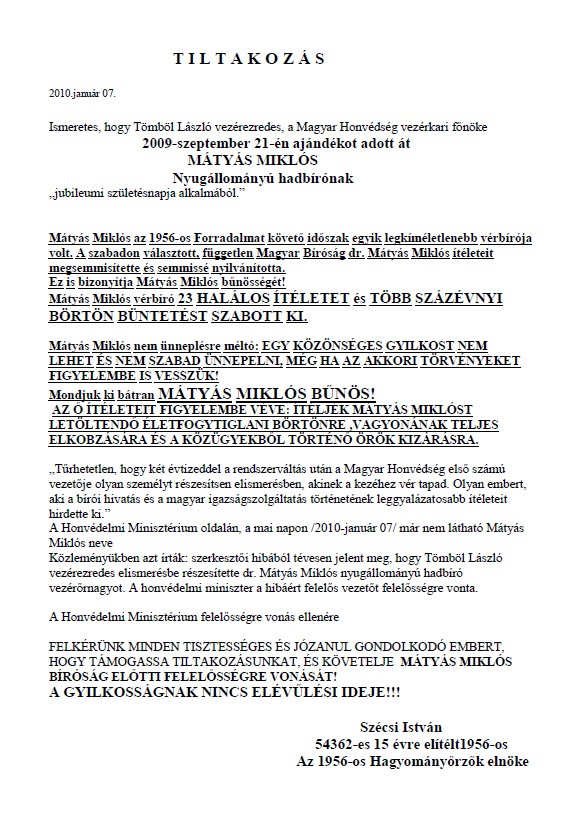 A KOMMUNIZMUS ÁLDOZATAINAK EMLÉKNAPJA 2010. 02. 25.